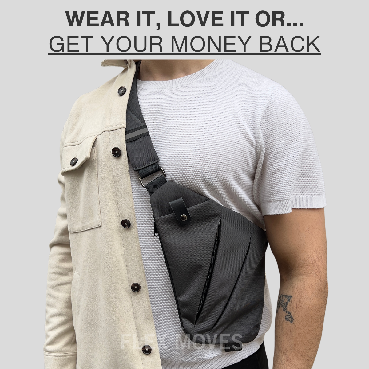 Flex Bag is the world's first innovative ergonomic sling bag that also acts as a discrete, yet comfortable storage solution... Keeping your must-have essentials safely tucked away from the outside world like no backpack can